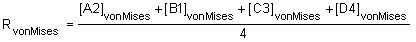 For the average of an invariant such as von Mises, the von Mises value for all tensor [A2], [B1], [C3], and [D4] are computed, then they are averaged as follows: